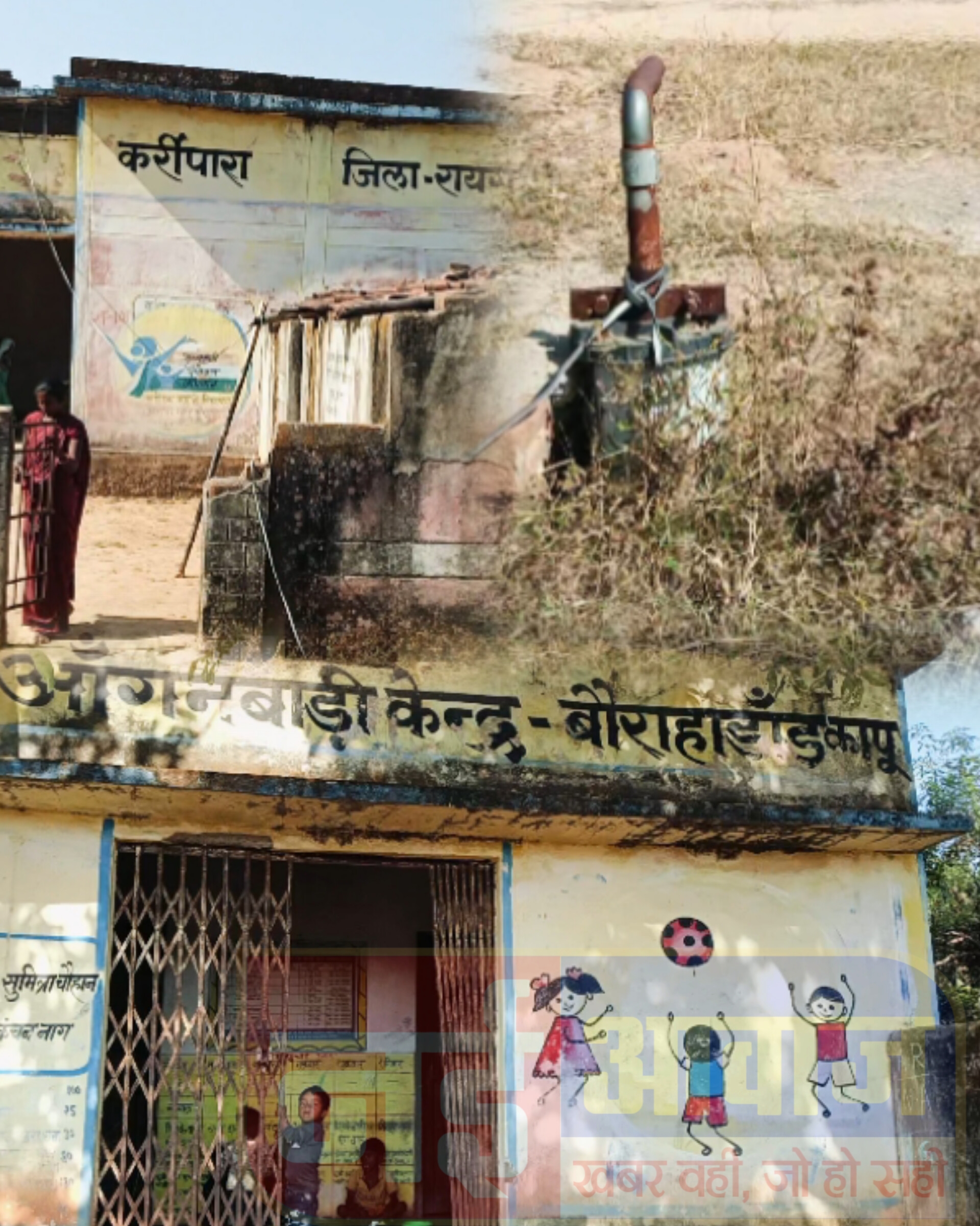 धरमजयगढ़: धरमजयगढ़ के महिला बाल विकास परियोजना कार्यालय कापू के अंतर्गत आने वाले ग्राम पंचायत बंधनपुर के आंगनबाड़ी केंद्रों की हालत बेहद दयनीय हो चुकी है। जर्जर भवन, टूटी खिड़कियां और दरवाजे, छत से झांकती सरिया और पानी की अनुपलब्धता से बच्चों की शिक्षा और पोषण योजना पर संकट गहरा गया है।